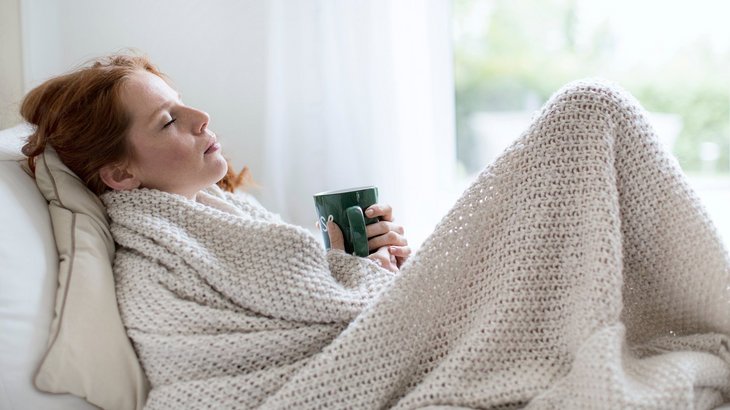 Trinken Sie ein bis zwei Stunden vor der Nachtruhe eine beruhigende Tasse Tee (ohne Koffein) und essen Sie zwei Stunden vor dem Schlafengehen nichts mehr. Bei einer Erkältung sind leichte Suppen ideal, denn Sie wärmen von innen und die verstärkte Flüssigkeitszufuhr lockert den Schleim und erleichtert das Abhusten. Wenn Sie Halsschmerzen haben, sollten Sie vor dem Schlafen noch mit einem Mittel gegen das Halskratzen gurgeln, damit Sie keine Schmerzen beim Einschlafen haben.