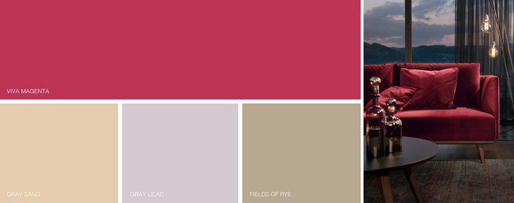 Die dunklen Erdtöne und auch die hellen Farben lassen sich wunderbar mit dem pulsierenden Farbton „Viva Magenta“ kombinieren, den das Pantone Farbinstitut zur Farbe des Jahres 2023 erkoren hat. Mit dem kraftvollen Rotton können Sie wunderbar kleine, intensive Akzente setzen, die alle Blicke auf sich ziehen. Pantone empfiehlt zum Beispiel die Kombination mit den hellen Farbtönen „Gray Sand“, „Gray Lilac“ oder „Fields of Rye“.