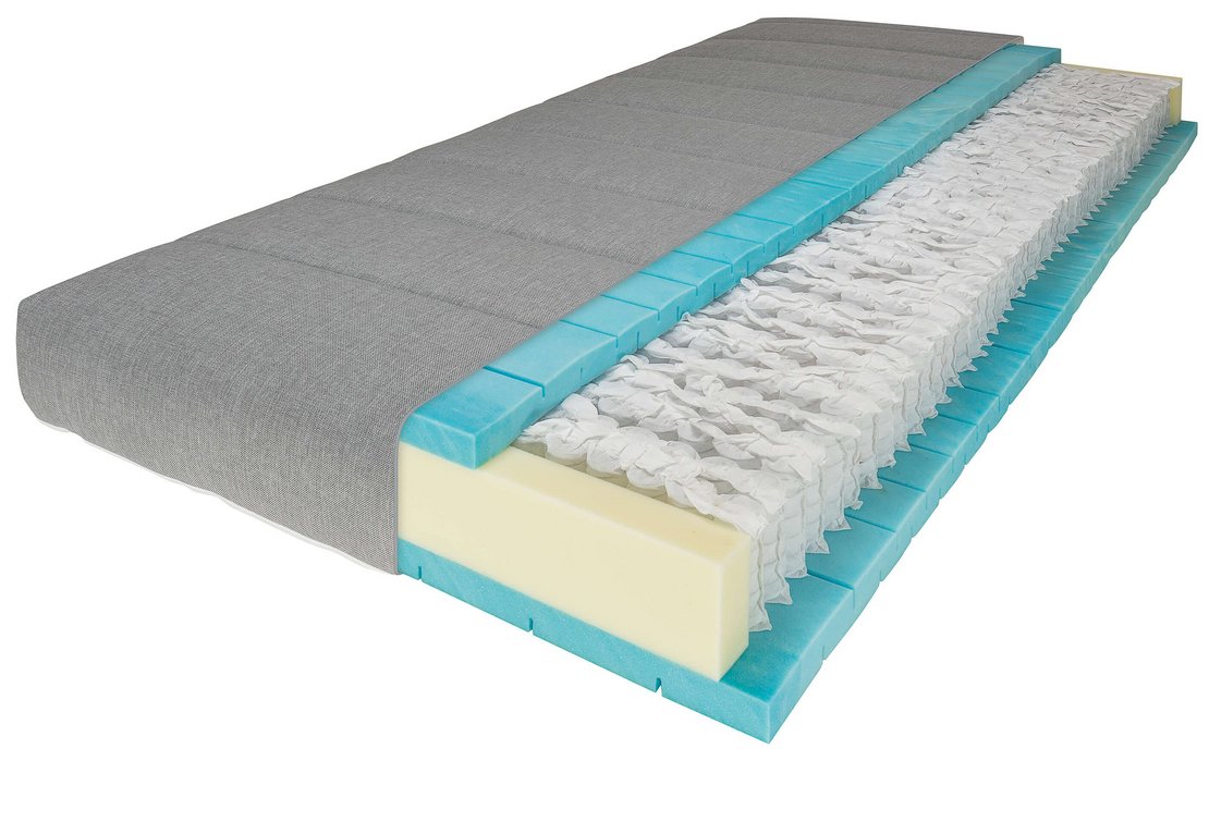 In the case of the barrel pocket spring core, the individual barrel-shaped springs are sewn into pockets made of spunbonded fabric and joined together. Due to the high number of barrel pocket springs in a base bed or mattress (500 springs/m2), a very point-elastic and excellently ventilated lying surface is created.