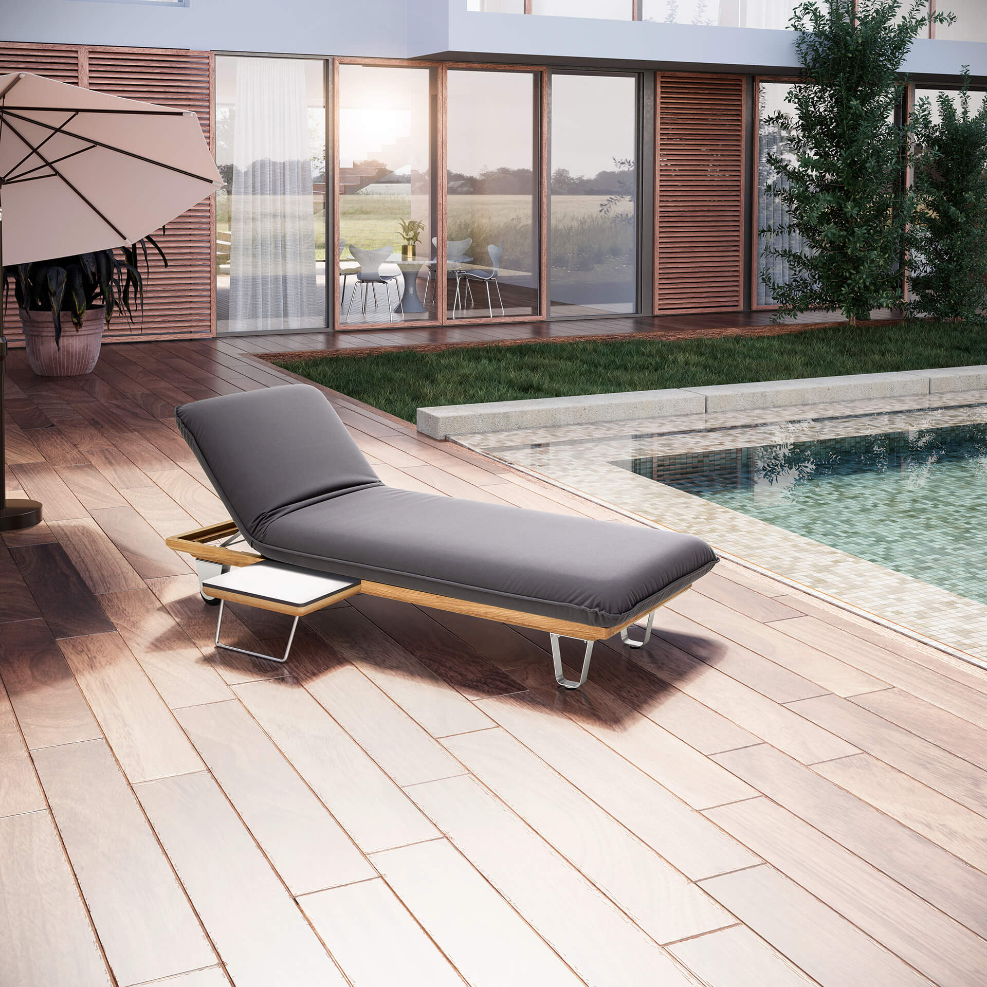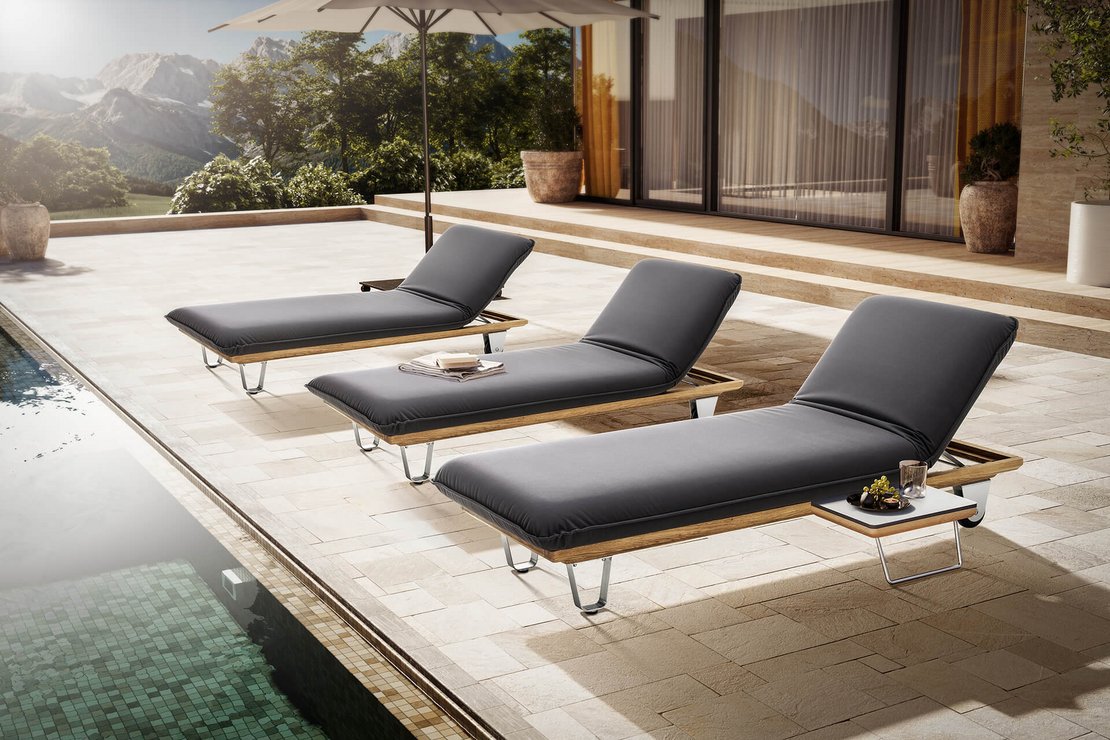 Die Outdoor-Möbelserie Butterfly ist einzigartig flexibel. Speziell die Liege Butterfly "Sunbed" kann an drei Seiten in zwei Stellungspositionen hochgeklappt werden. Somit haben Sie eine Vielzahl an Möglichkeiten, es sich beim Sonnenbaden bequem zu machen. So geht echtes Relaxen!