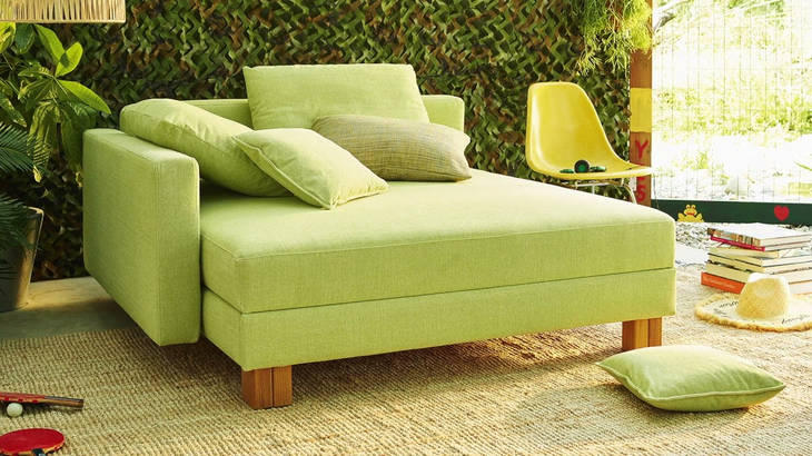 This generously dimensioned lounger offers space for lots of fun! Whether for lounging, stretching out or romping around. In its widest version, it easily passes for a double bed, because it's also great for sleeping on!