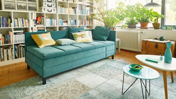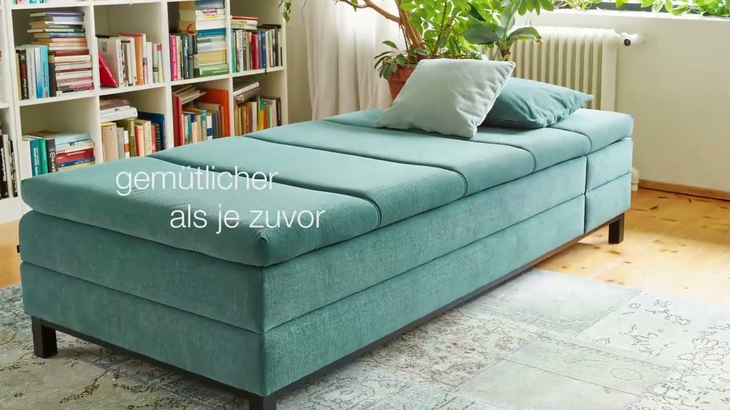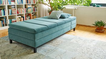 Aufgrund des integrierten Kopfhochstellers und des ausziehbaren Nachtkästchens gehört die Wohnliege »Max« zu den Allraumbetten der Extraklasse.