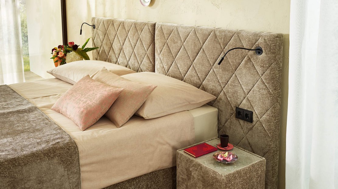 Die Betthäupter können auch für Elektroeinbauten wie z. B. Lampen, Steckdosen oder auch USB-Anschlüsse vorbereitet werden.
