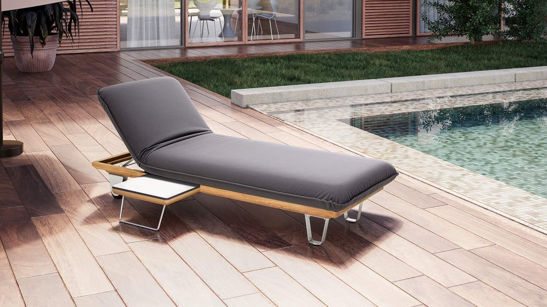 Die Outdoor-Möbelserie Butterfly ist einzigartig flexibel. Speziell die Liege Butterfly "Sunbed" kann an drei Seiten in zwei Stellungspositionen hochgeklappt werden. Somit haben Sie eine Vielzahl an Möglichkeiten, es sich beim Sonnenbaden bequem zu machen. So geht echtes Relaxen!