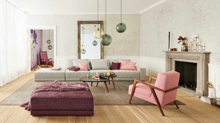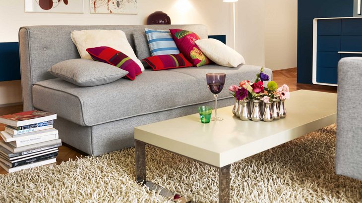 Wenn Sie als Grundfarbe helle Töne wie Weiß, Beige, Grau, Creme oder zarte Pastelltöne wählen, können Sie viele verschiedene kräftige Farben damit kombinieren. Brauntöne harmonieren mit Orange, Gelb oder hellem Grün ausgezeichnet und Sie können interessante Farbtupfer setzen. Die Accessoires können Sie zum Beispiel entsprechend der Jahreszeit regelmäßig tauschen, um Ihrem Wohnzimmer einen neuen Look zu verleihen.