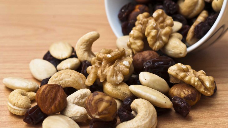 Nüsse und Trockenfrüchte schmecken nicht nur sehr gut – zum Beispiel in Form von Studentenfutter – sondern liefern wertvolle Inhaltsstoffe und Energie. Nüsse enthalten viele gesunde Mineralstoffe und Fette, die unser Gehirn zum Arbeiten benötigt. Eine Handvoll Nüsse am Tag sind die ideale Menge, damit Sie nicht zu viele Kalorien zu sich nehmen und die richtige Menge Mineralstoffe und Fette aus Nüssen zu sich nehmen.