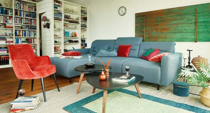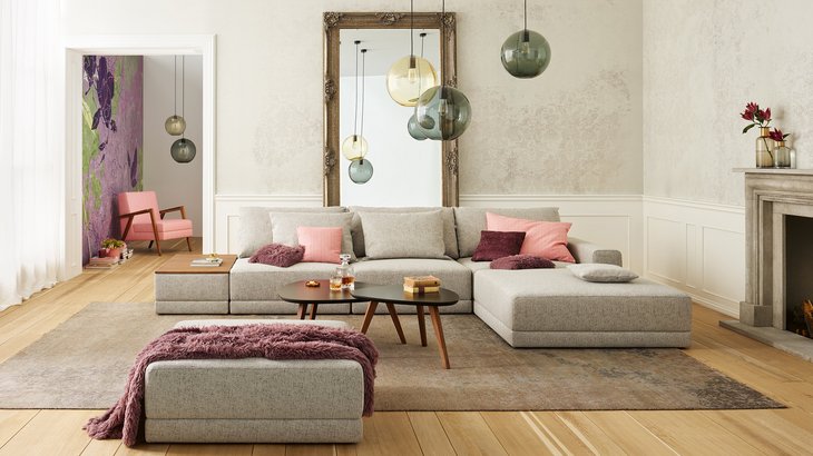 Auf dem Sofa gemeinsam als Familie entspannen und Filme schauen ist gemeinsam schöner, doch es braucht Platz. Besonders praktisch sind daher frei kombinierbare Module wie bei unserer Wohnserie Laguna. Eine überraschend einfache Technik ermöglicht eine Vielzahl von Layouts im Dialog mit den unterschiedlichsten Raumstrukturen.