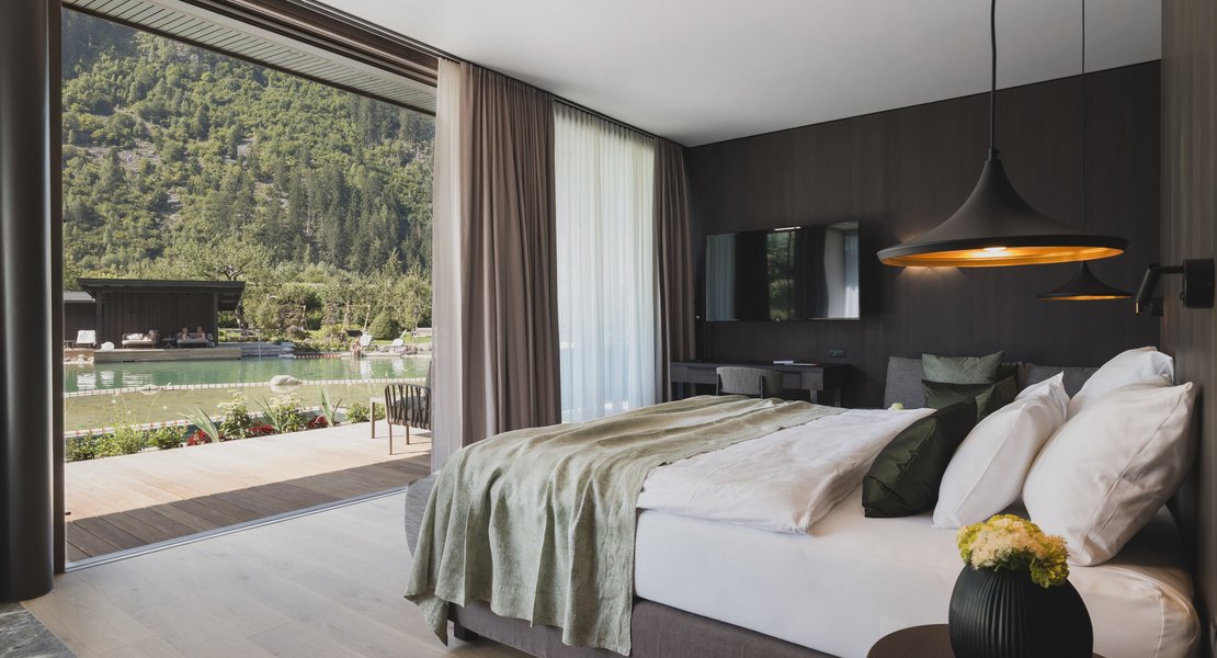 Ganz neu sind die Gartenlofts für zwei mit einem ganz persönlichen Naturpool auf der Terrasse. Freuen Sie sich auf entspannte Stunden in der eigenen Sauna, der eigenen Infrarotkabine und auf ganz private Wellnessmomente. Auf ein Kingsize-Boxspringbett von JOKA, edle Naturmaterialien und kulinarische Gaumenfreuden im Hotel-Restaurant.