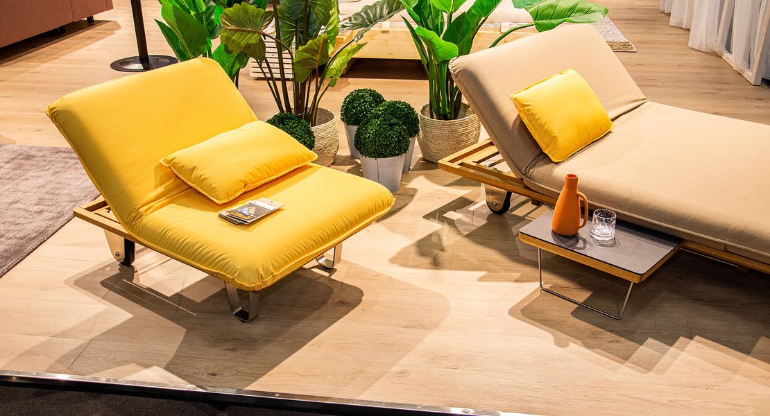 Fiore – das furioses Doppelbett mit dem gewissen Flair, Onda – das Schlafsofa, dass sich mit nur zwei Handgriffen in ein vollwertiges Doppelbett verwandeln lässt, sowie unsere neue Outdoor-Möbelkollektion Butterfly - Luxus für Terrasse und Balkon.