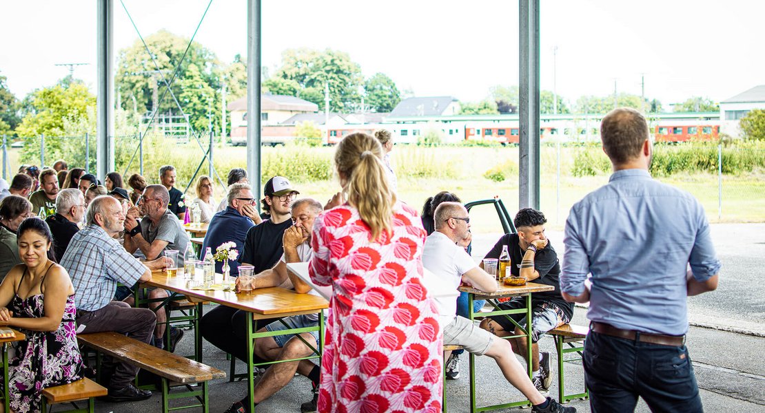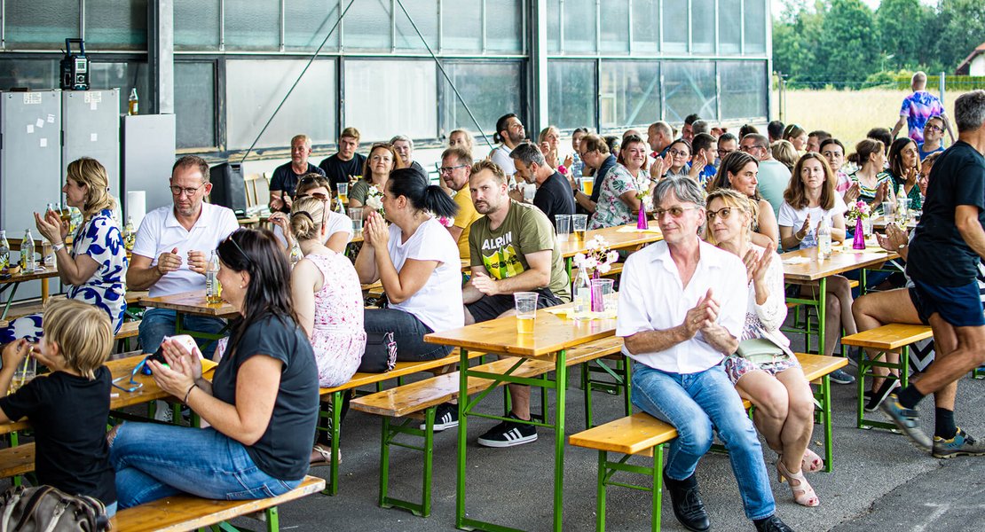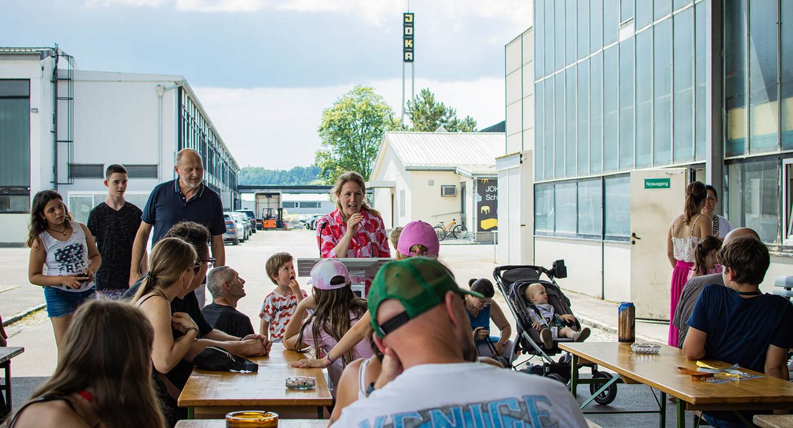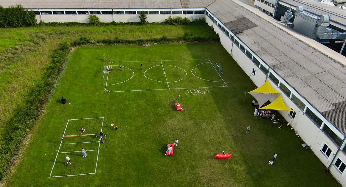 Danach ging es ans Feiern. Bei Speis und Trank wurde außerdem der neue JOKA-Garten eingeweiht. Statt einer wild wuchernden „Gstettn“ gibt es jetzt eine große Spielwiese. Sie soll künftig ein Erholungsort für Mitarbeiterinnen und Mitarbeiter sein und kann inklusive Küche und Grillmöglichkeit auch an den Wochenenden genutzt werden – Fußballtore und Badmintonnetze inklusive.