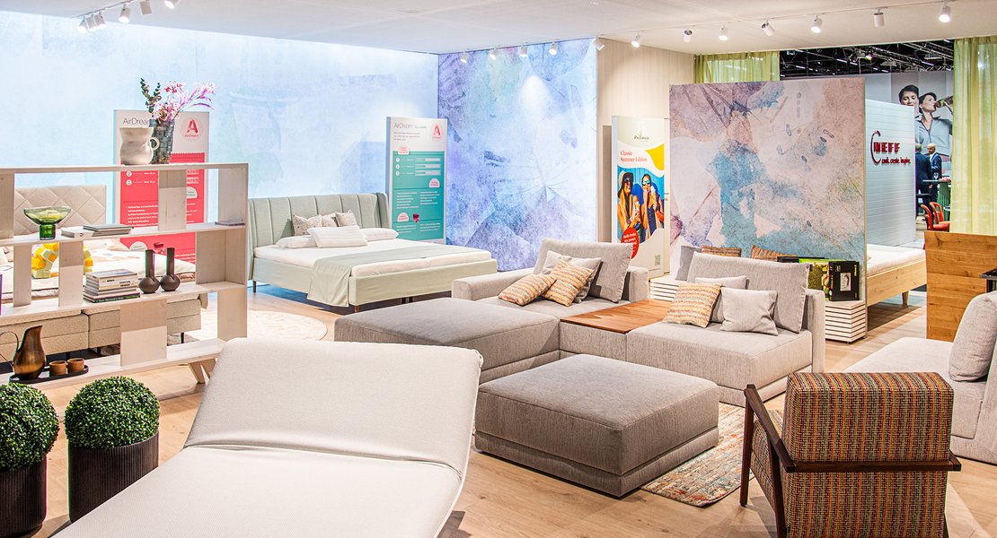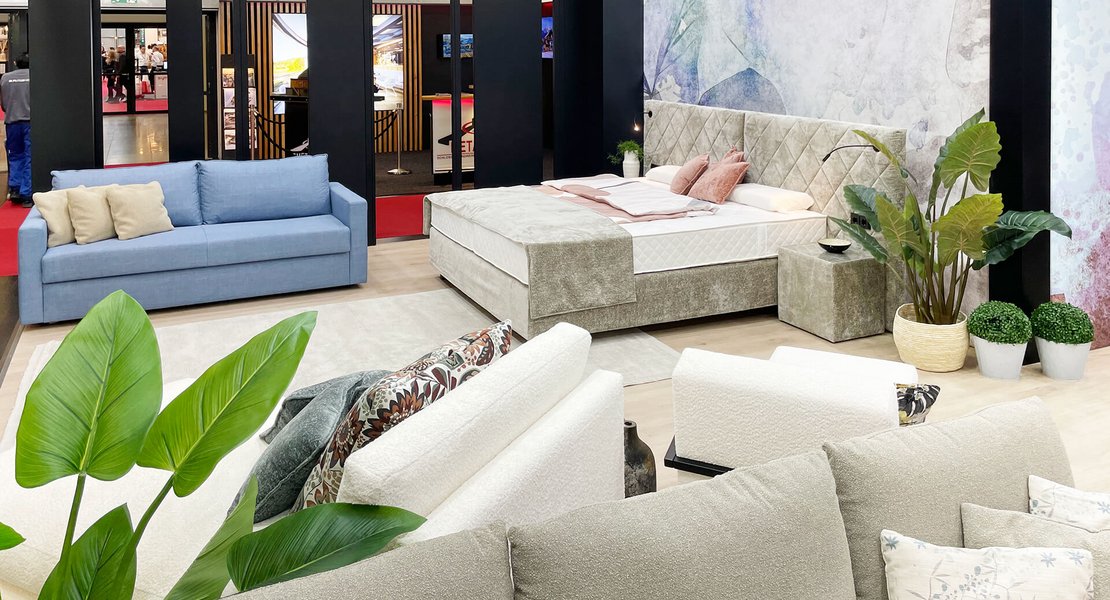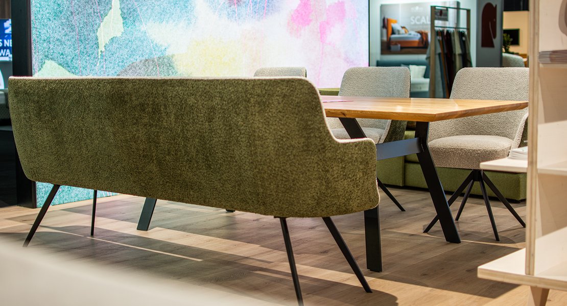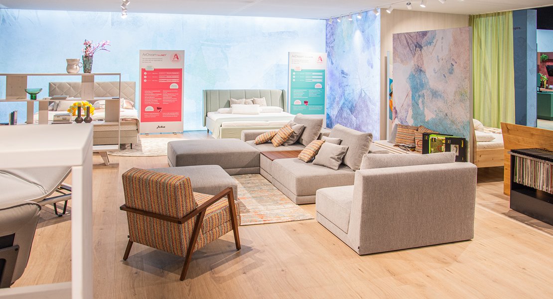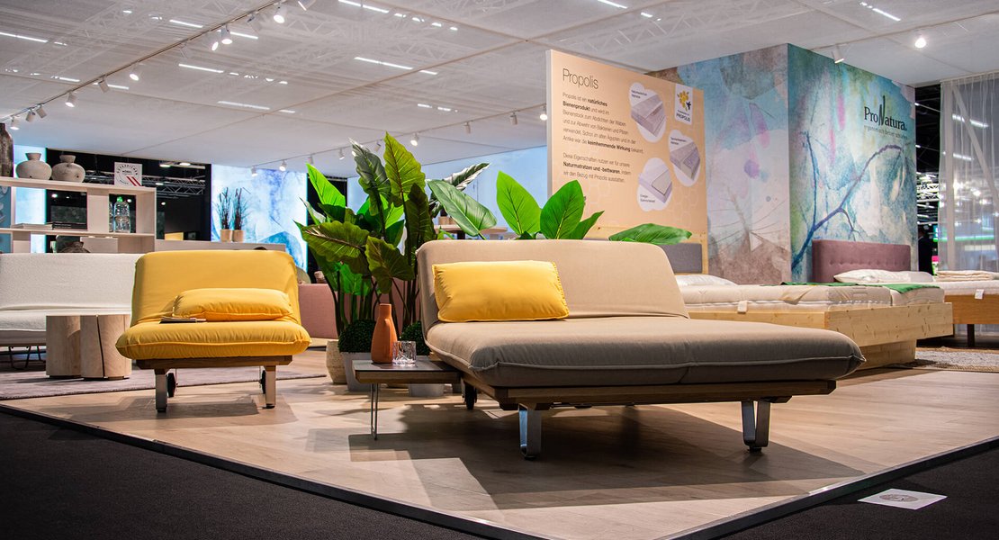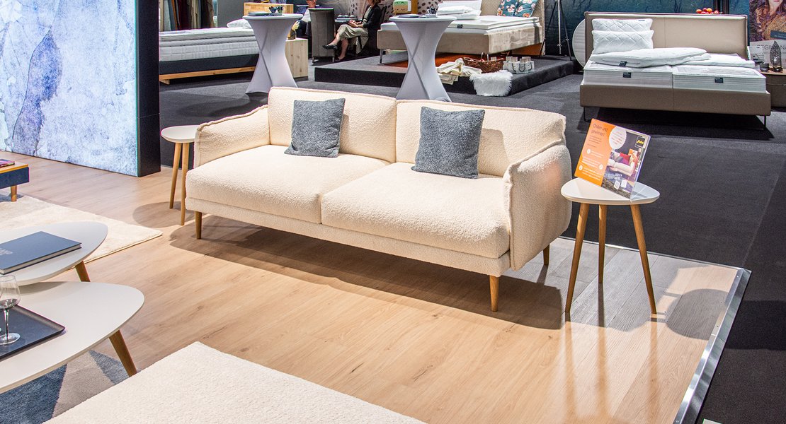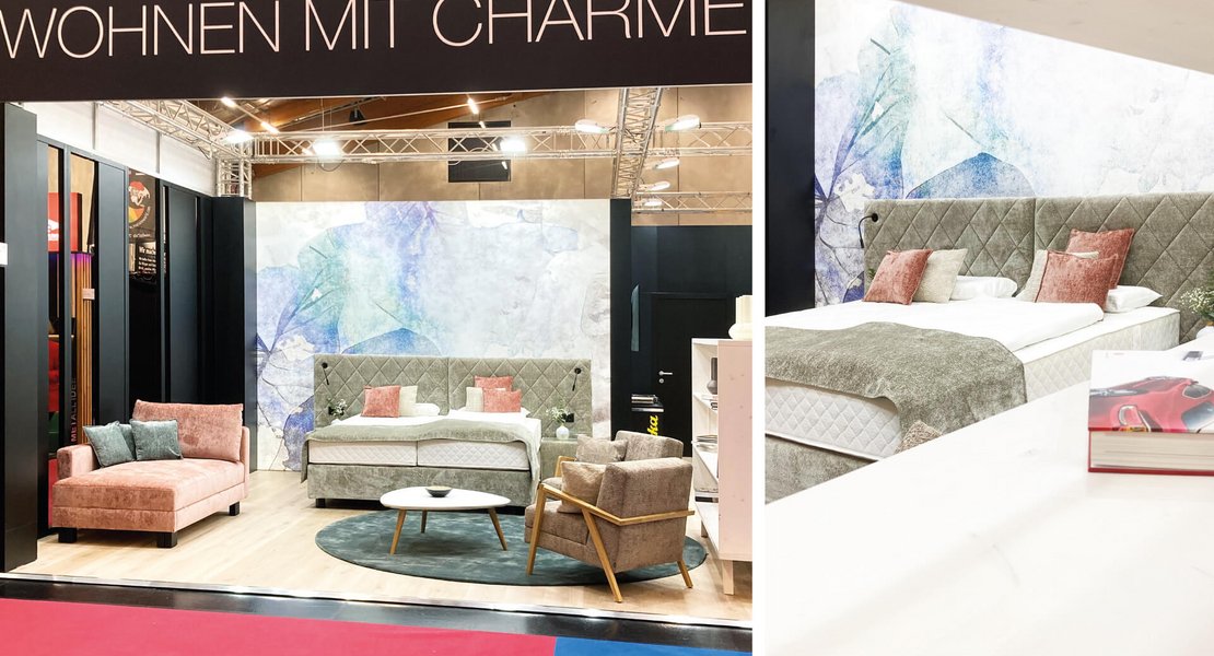 Wir präsentierten unsere Highlights: die ausgezeichnete Wohnserie Mira, die Fauteuils Laguna, unsere gemütliche Essgarnitur Pieno, die Chaiselongue Quadro und unser brandneues Boxspringbett Collina. Ein herzliches Dankeschön an alle, die bei uns vorbeigeschaut, geplaudert und ausprobiert haben. Wir freuen uns schon jetzt auf ein Wiedersehen im nächsten Jahr!