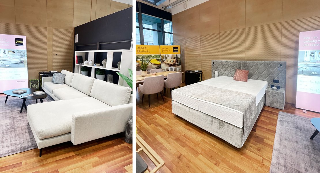 Auf zwei Ebenen werden jetzt in der Sagedergasse 50 die JOKA-Möbelkollektionen in einem zeitgemäßen Ambiente präsentiert.