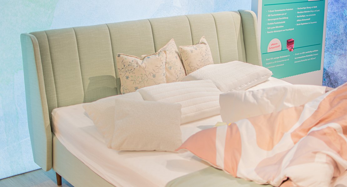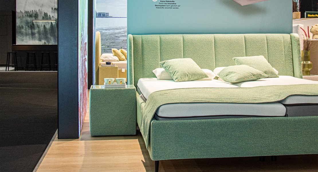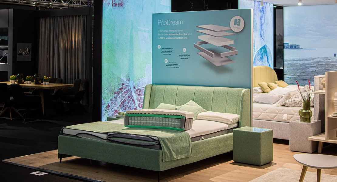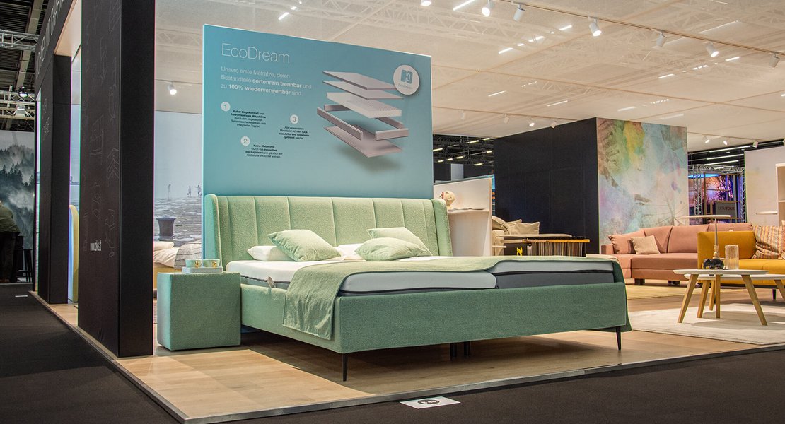 Butterfly, die neue Outdoor-Möbelkollektion in Kooperation mit dem Sonnensegel-Spezialisten Soliday, EcoDream, die kreislauffähige Recycling-Matratze mit ausgeklügeltem Stecksystem ohne Verklebungen,