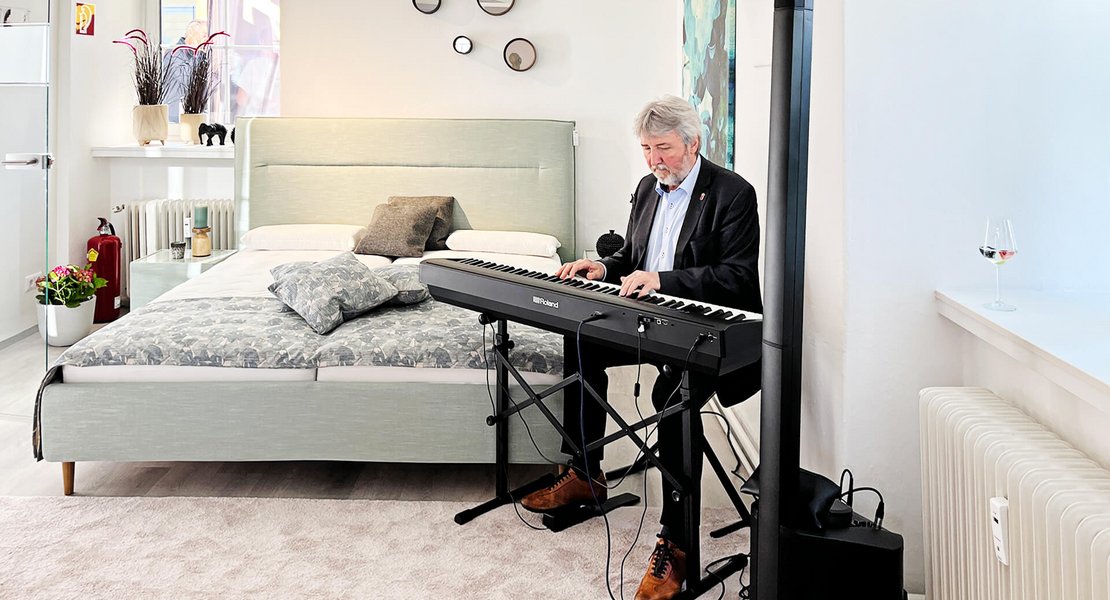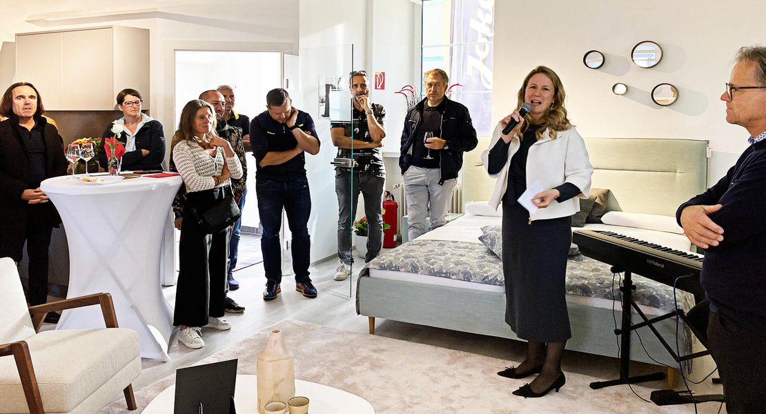 Wir präsentierten unsere Highlights in lockerer Atmosphäre: Die Kippcouch Cento mit dem gewissen Extra sowie unser neues, furioses Doppelbett mit dem gewissen Flair Fiore.