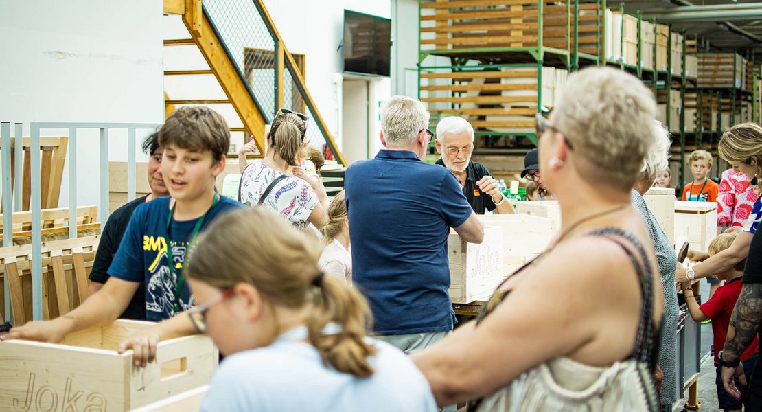 Am Donnerstag, dem 27. Juni, veranstaltete JOKA bei strahlendem Sonnenschein zum zweiten Mal den Mama/Papa-Tag, bei dem Mitarbeiterinnen und Mitarbeiter die Gelegenheit hatten, ihre Kinder in das JOKA-Werk mitzubringen, um zum einen den Arbeitsplatz der Eltern kennenzulernen und zum anderen etwas gemeinsam zu basteln. 30 Kinder gingen ans Werk und zimmerten eine stabile, praktische Holzkiste.