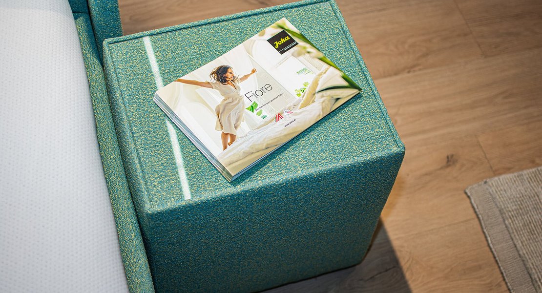 Fiore, unser neues, furioses Doppelbett mit dem gewissen Flair, Lino, das leichtfüßige Schlafsofa für Zwei und Fauteuil Laguna, extravagant im Design und super gemütlich. Außerdem mit dabei: Der JOKA-Klassiker mit frischem Pep – unser Sessel Paolo macht rundum gute Laune.