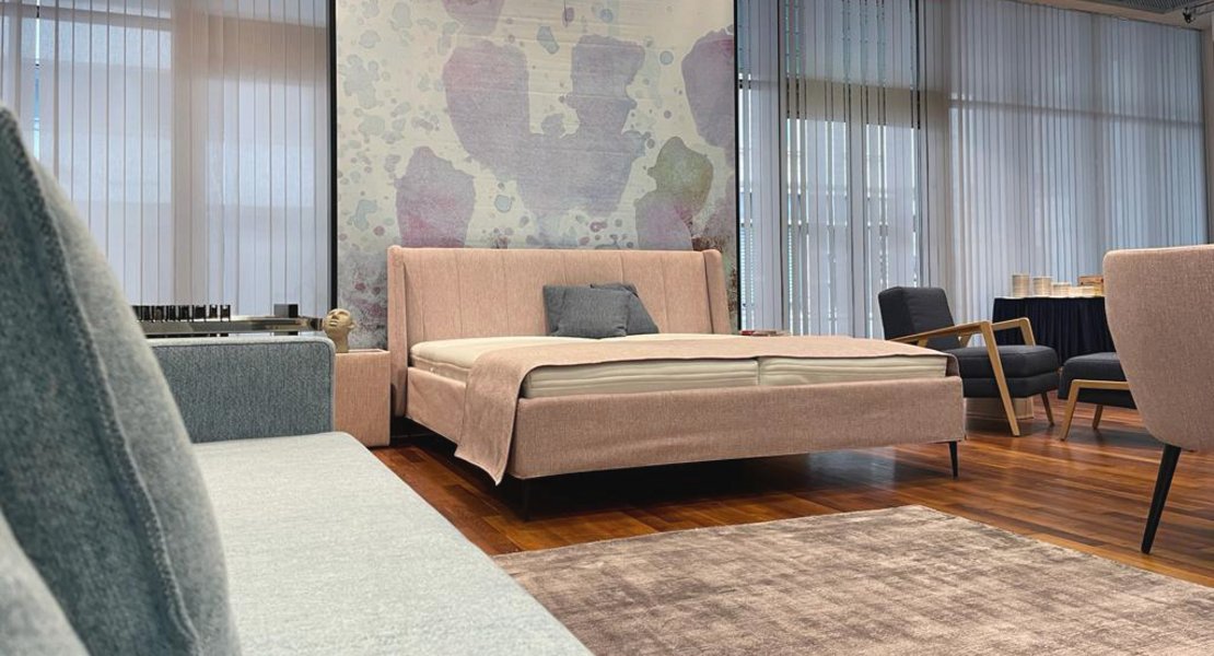 Mira, weich, sinnlich, frei kombinierbar und zudem mit dem Interior Innovation Award 2025 ausgezeichnet, Vita, wenn Sie es klassich, minimalistisch oder gerne extravagant mögen, Butterfly, die Outdoor-Möbelkollektion in Kooperation mit dem Sonnensegel-Spezialisten Soliday, AirDream, das nachhaltige Matratzensystem mit eNdura-Schaum, Fiore, unser furioses Doppelbett mit dem gewissen Flair, Pineo, die neue Essgarnitur in Kombination mit unserem Sessel Paolo (NEU auch als Drehsessel erhältlich), Collina, das kolossale Boxspringbett mit Stauraum sowie Lago, die neue Wohncouch zum Chillen und Relaxen.
