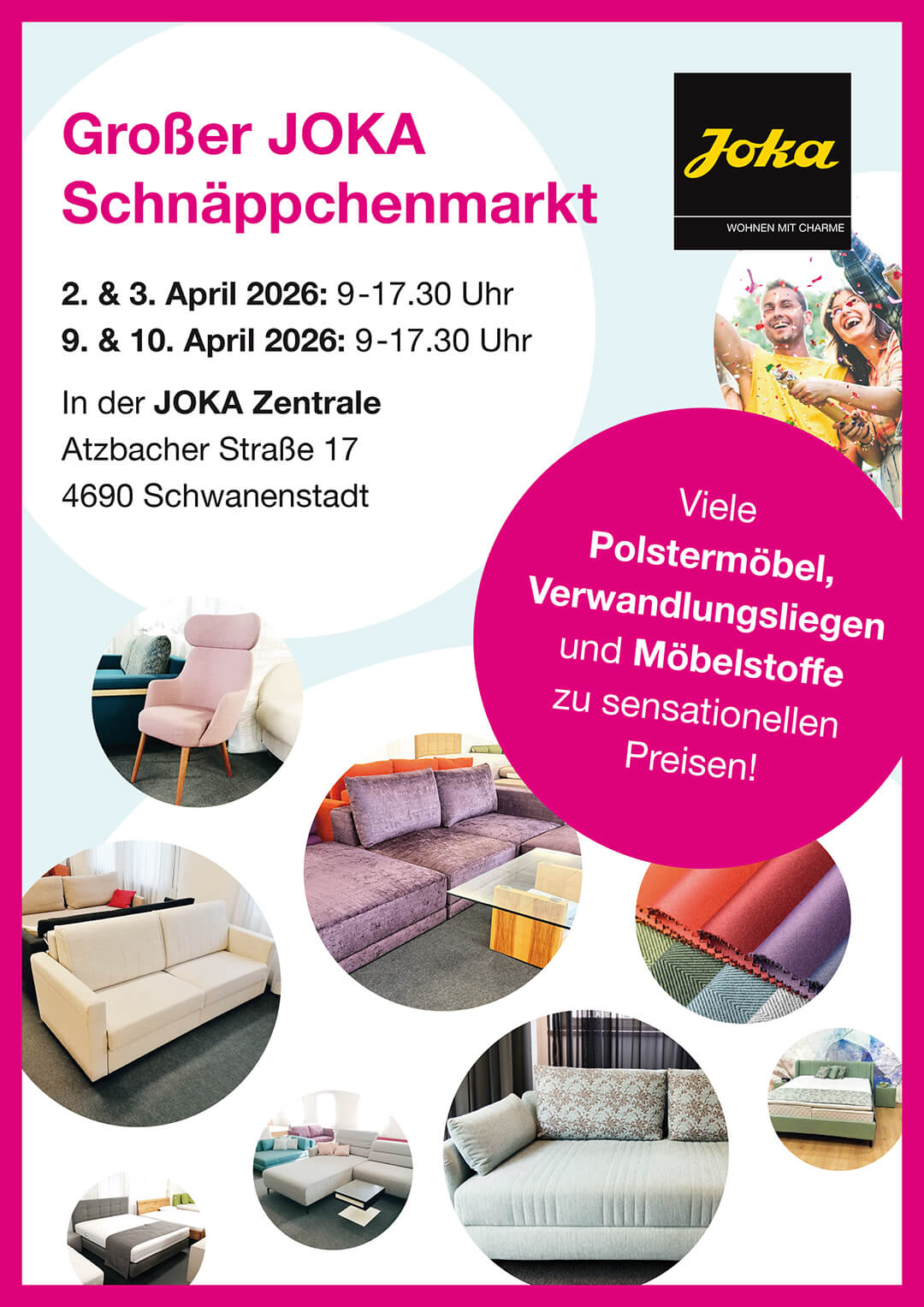 Großer JOKA Schnäppchenmarkt am 2. & 3. April sowie am 9. & 10. April 2026 jeweils von 9.00 - 17.30 Uhr