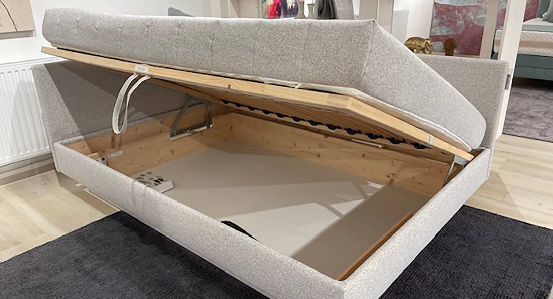 Wohnliege Mod. 460/5 mit Stauraum, Sockeloptik, Gr. 140/200,