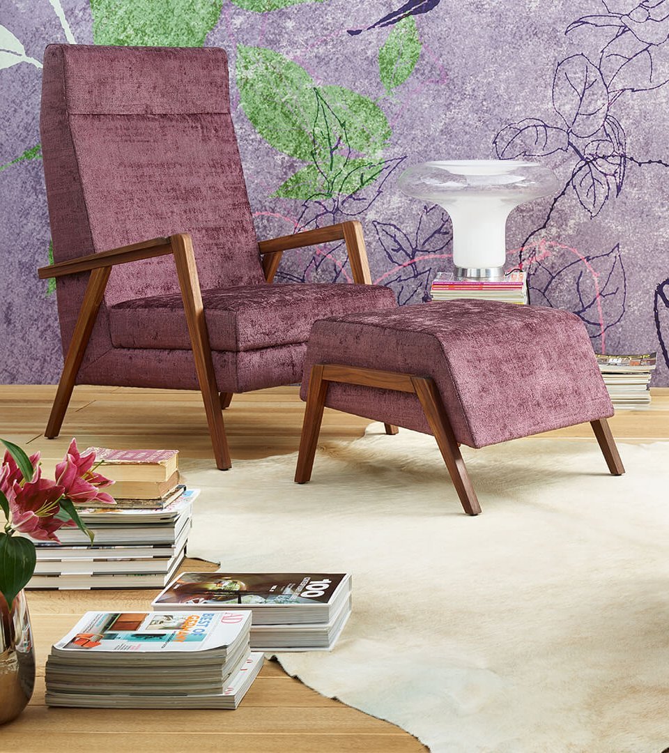 Das Möbelensemble Hochlehner & Hocker Laguna aus der gleichnamigen Wohnserie ist extravagant im Design und trotzdem gemütlich. Der Hocker komplettiert den Hochlehner und bietet müden Füßen Platz zum Ausruhen.